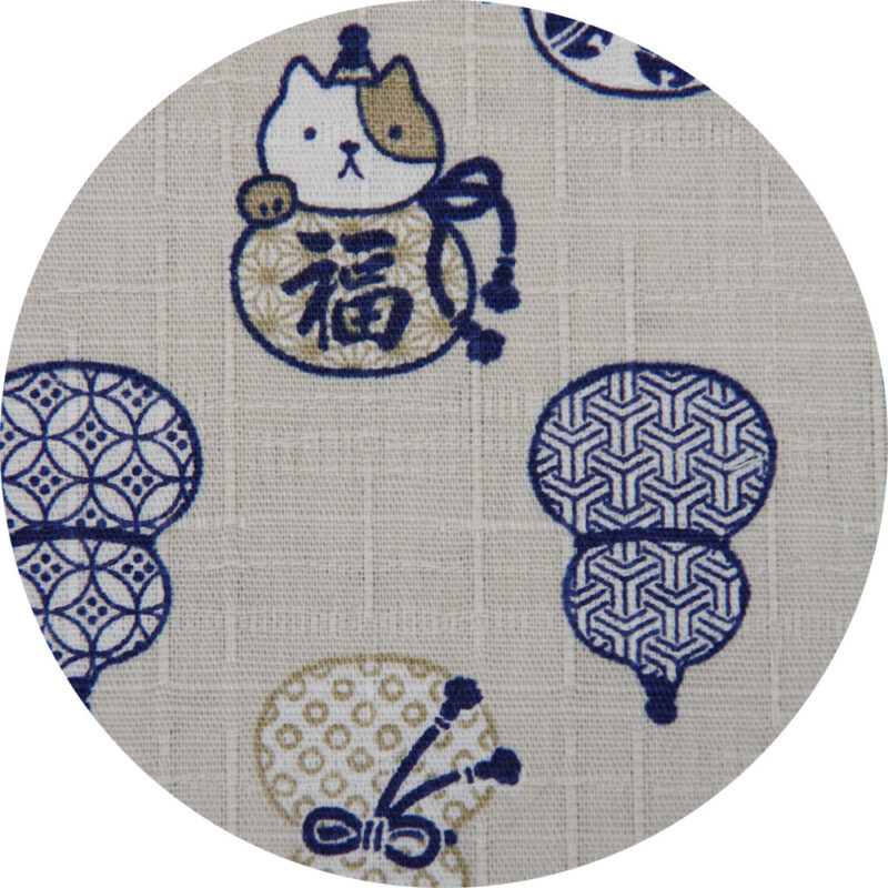 ギターストラップひょうたん猫 2026.03.20 DGS-HTN32 JAN4571694381028 Daiking自社工房にて製造するギターストラップ、ひょうたん猫。日本製の生地を使用しています。ギター本体をキズつけにくくするために日本製YKK製プラスチックパーツを使用しています。エンド革には牛本革を使用。合皮のエンドよりも突然の切れが減ります。裏地のテープには日本製のPPテープを使用しています。