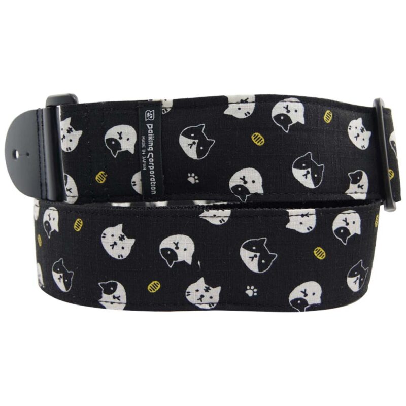 ギターストラップ猫と小判 2025.03.30 DGS-NKB JAN4560452459598 Daiking自社工房にて製造するギターストラップ、猫と小判。日本製の生地を使用しています。ギター本体をキズつけにくくするために日本製YKK製プラスチックパーツを使用しています。エンド革には牛本革を使用。合皮のエンドよりも突然の切れが減ります。裏地のテープには日本製のPPテープを使用しています。