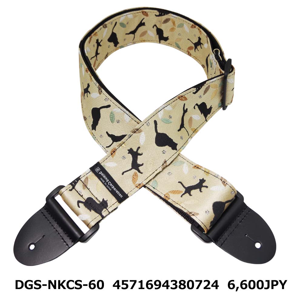 Nishijin-oriGuitarStrap DGS-NKCS60″金襴猫影絵柄”Kinran Cat Silhouette Pattern”
